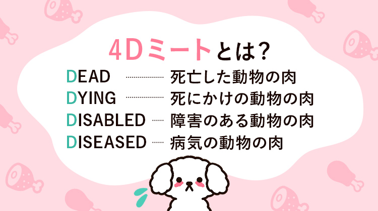 4Dmeatとは、病気や死んだ動物の肉・骨を使った原材料のことです。